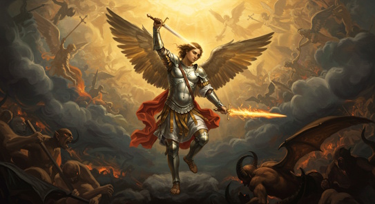 Michael, also called Saint Michael the Archangel, Archangel Michael and Saint Michael the Taxiarch is an archangel and the warrior of God in Christianity, Judaism, and Islam. The earliest surviving mentions of his name are in third- and second-century BC Jewish works, often but not always apocalyptic, where he is the chief of the angels and archangels, and he is the guardian prince of Israel and is responsible for the care of the people of Israel.Christianity conserved nearly all the Jewish traditions concerning him,and he is mentioned explicitly in Revelation 12:7–12, where he does battle with Satan, and in the Epistle of Jude, where the archangel and the devil dispute over the body of Moses.