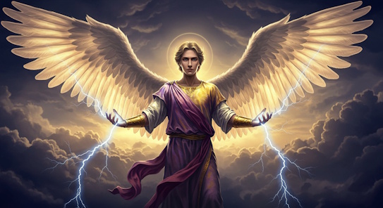 Throne Angel Uriel is a figure in Jewish and Christian traditions, often regarded as an archangel, but also refered to as a Throne Angel. He associated with wisdom, truth, and divine light. His name, derived from Hebrew, means "fire of God" or "light of God". Uriel is mentioned in apocryphal and pseudepigraphical texts, such as the Book of Enoch and 2 Esdras, where he serves as a messenger of divine wisdom and provides guidance to prophets like Enoch and Ezra. In various religious traditions, Uriel is depicted as an angel of the Presence, meaning he is capable of being in the presence of God's pure light. He is also associated with the sun, often depicted carrying a book or scroll symbolizing wisdom, a flaming sword, or a chalice. In some traditions, he is considered a Seraph or a Cherub, reflecting his role in divine wisdom and light. In modern angelology, Uriel is often seen as the Archangel of Truth, helping individuals to find and speak their truth while offering spiritual insight and guidance. He is also known as the "Prince of the Sun" and the "Angel of the Presence," and is sometimes linked to the planet Uranus.